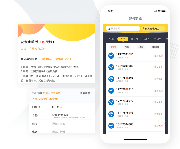 无论专属号池或线上号池,均可实现在线实时获取推荐靓号,提升下单转化率